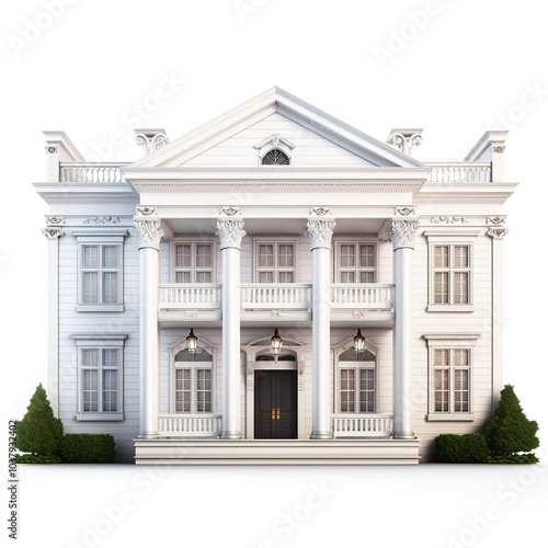 A colonial-style house, tall white columns, classic architecture, isolated on white background
