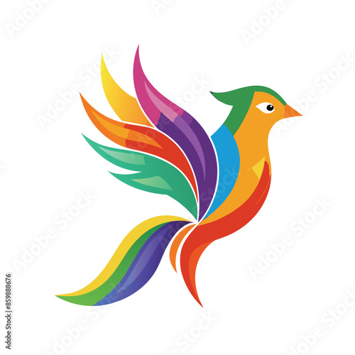 bird, logotype, design, illustration, colourful, abstract, stylised, minimalist, graphic, vector, art, nature, symbol, animal, vibrant, colours, rainbow, white, background, brand, branding, identity, concept, creative, modern, simple, elegant, clean, bright, cheerful, happy, free, flight, wing, tail, feather, green, yellow, orange, red, purple, blue, digital, artwork, icon, graphic art