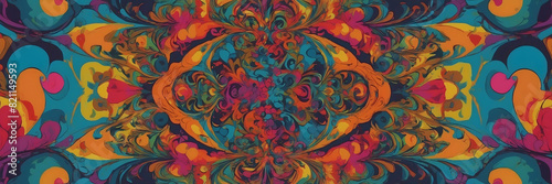 A colorful abstract design with mirror symmetry and complex patterns