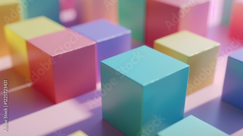 A colorful array of cubes in various shades of pink, blue, and yellow