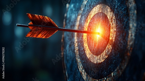target, arrow, bullseye, precision, success, accuracy, achievement, sharpened, strategy, red, white, glowing, corporate, professional, teamwork, innovation, futuristic, minimalistic, abstract, sharp, conceptual, landscape, horizon, vibrant, colourful, digital, representation, gold, arrow