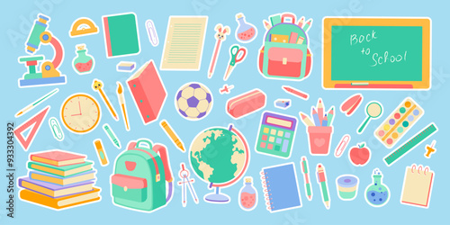 school, set, educational, vector, isolated, illustration, book, pen, globe, crayons, ruler, back, notebook, paper, background, collection, icon, scissors, equipment, study, backpack, stationery, supply, student, bag, learning, university, object, design, calculating machine, paint, symbol, brush, drawing, apple, cartoon, clock, college, art, pupil, eraser, elementary, colourful, flat, chemistry, cognition, science, sharpener, accessory