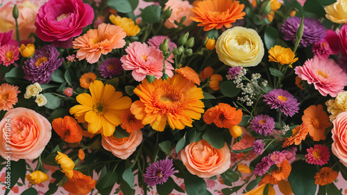 A colorful floral arrangement with orange, pink, and yellow flowers
