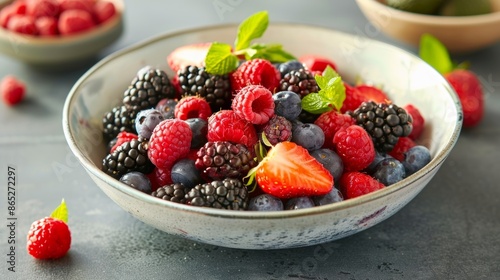 A colorful fruit bowl overflowing with antioxidantrich berries topped with a drizzle of creamy avocado oil.
