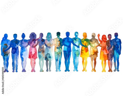 people, diverse, oneness, colourful, connected, community, support, togetherness, friendship, hand in hand, humanity, holding, standing, rainbow, art, watercolor, harmony, together, silhouette, abstract, inclusion, diversity, spectrum, connection, human, colours