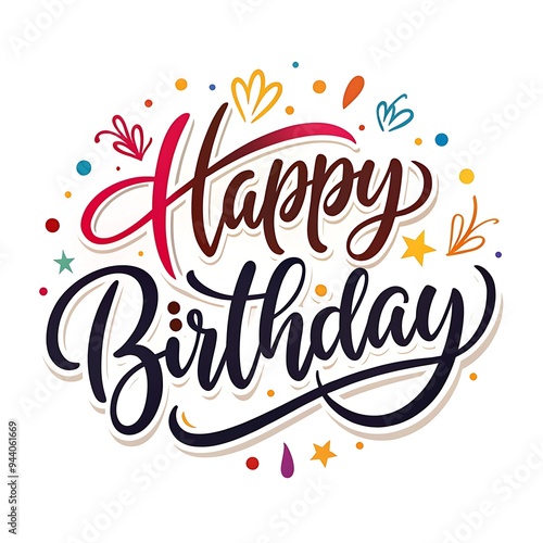 A colorful handwritten quotHappy Birthdayquot with decorative elements