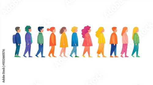A colorful illustration of diverse individuals standing in a line, showcasing various styles and expressions in vibrant colors.