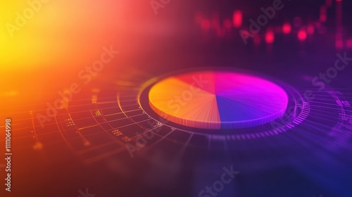 A colorful pie chart surrounded by digital elements, representing data visualization and analytics in a vibrant, futuristic setting.