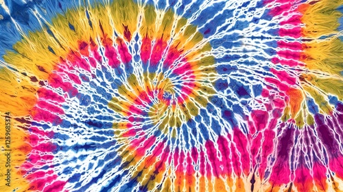 A colorful, spiral tie dye design