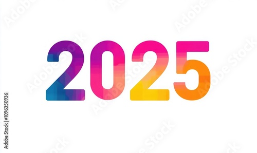 A colorful vector logo of the numbers "2025" with text below saying happy new year, white background