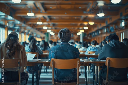 A competitive exam setting with proctors overseeing students, ensuring fair play during the crucial entrance exam