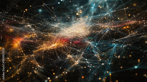 a complex big data network visualized with interconnected points, symbolizing the flow and analysis of vast amounts of information.