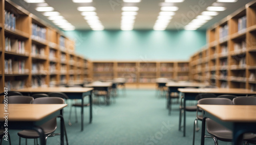 A Conceptual Blurred Image of an Empty College Library Interior