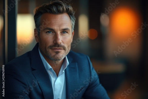 man, male, portrait, professional, business, businessman, suit, blue suit, confident, mature, middle-aged, photogenic, attractive, stylish, fashion, style, corporate, executive, leader, ceo, model, head shot, serious, gaze, expression, background, blur, bokeh, lighting, indoor, office, elegant, sophisticated, successful, ambition, determination, power