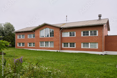 A Contemporary Brick Building Set in a Peaceful and Tranquil Landscape Environment