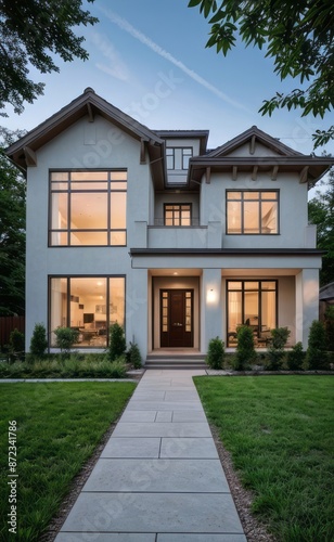 A Contemporary Dwelling with Stylish Architecture, Beautiful Exterior Design, and a Serene Garden Setting. Perfect Family Home in a Residential Neighborhood, Featuring Thoughtful Construction