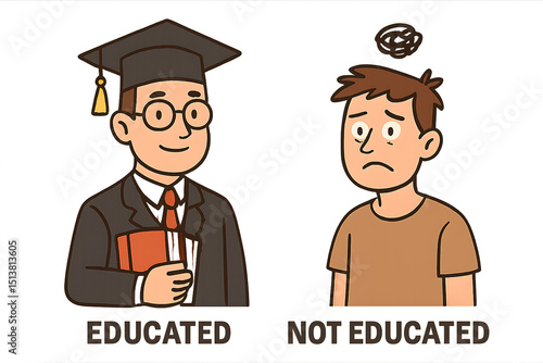 A contrasting depiction of an educated person vs. an uneducated person side by side