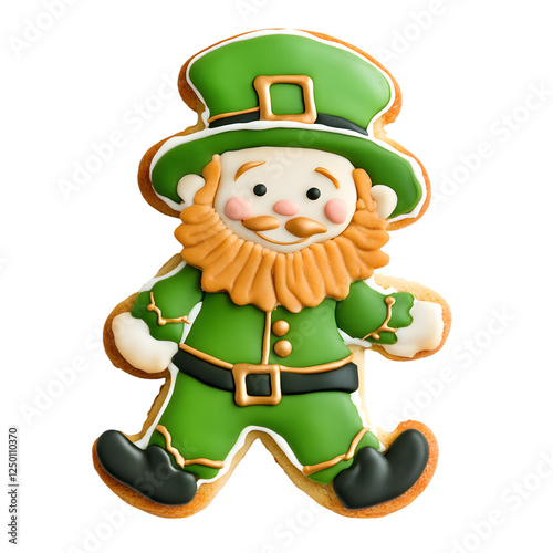 A cookie decorated as a leprechaun, isolated on a transparent background. Saint Patrick's Day concept.