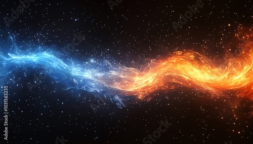 A cosmic swirl of blue and orange gases against a starry background, representing energy.