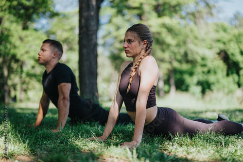 couple, yoga, outdoors, forest, exercise, wellness, fitness, stretching, nature, health, serene, balance, calmness, dedication, lifestyle, healthy, connection, calm, active, fresh air, tranquil, peaceful, action, activity, good health, healthy life, fit, people, sport, recreation, strength, strong, outside