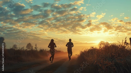 A couple of adults on a morning run, healty life, copy space, 16:9