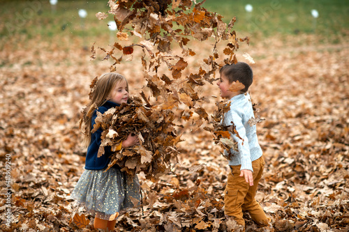 autumn, children, little, fallen leaves, children, childhood, cute, lovely, sweet, adorable, emotion, concept, outdoors, mood, couple, friendship, lifestyle, smiling, playing, fun, happiness