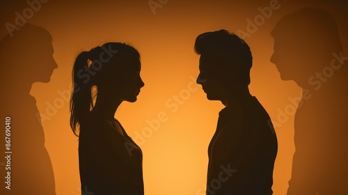 A couple silhouette background looking in different direction , in marriage clash and about to get divorce or to separate.