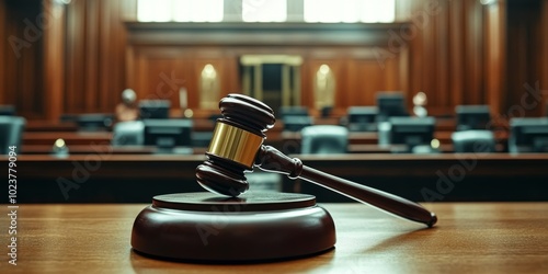 A courtroom scene featuring the gavel as a powerful symbol of law and authority.