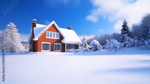 house, snow, winter, landscape, tree, sky, architecture, home, nature, calmness, season, cold, outdoors, scenic, rural, peaceful, environment, warmth, beauty, property, residential, bungalow, sunlight, white, blue, glacé, serene, escape, idylli, view, horizon, cosy, design, seasonal, comfort, retreat, picturesque, snowdrift, chimney, roof, window, country, snowfall, charme