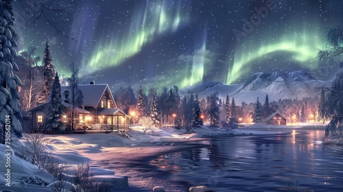 winter, cabin, aurora borealis, aurora borealis, snowy, landscape, cosy, night sky, illuminated, cold, nature, serene, tranquil, wilderness, travel, get-away, snow, forest, tree, holiday, vacation, retreat, rustic, outdoors, arctic, scenic, beauty, glacé, lake, green, light, star, picturesque, adventure, tour tourism, destination, relaxation