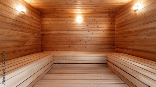 A cozy wooden sauna featuring simplistic design and warm lighting, creating an inviting atmosphere for relaxation and meditation, perfect for unwinding after a long day.