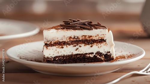 A cream cake, with cream, with chocolate on a saucer, soft light, Generative AI illustrations.