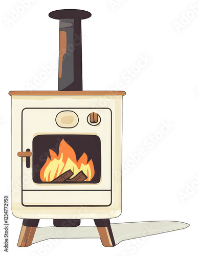cute, sticker, cut-out, stove, wood, burning, fire, flames, cream, coloured, white, beige, tan, brown, orange, yellow, heat, warmth, cosy, home, comfort, winter, autumn, fall, log, log, fuel, energy, chimney, pipe, vintage, retro, classic, design, illustration, graphic, art, style, aesthetic, element, decoration, interior, room, house, cabin, bungalow, fireplace, hearth