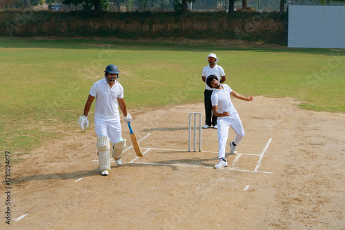 cricket, bowler, field, sport, action, india, delivery, game, athlete, competition, match, player, sharpened, concentration, team, grass, pitch, recreation, leisure, exercise, skill, technique, motion, dynamic, energy, determination, practice, training, rural, countryside
