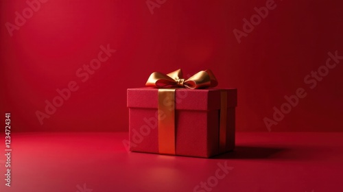 A Crimson Gift Box with a Golden Ribbon, a Symbol of Celebration and Festive Cheer