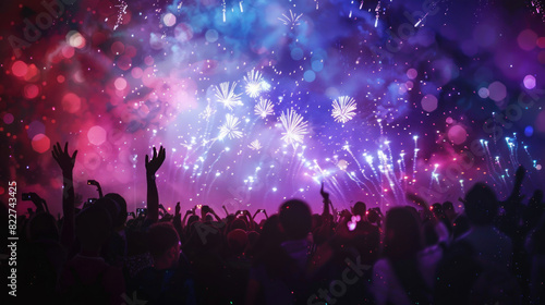 A crowd of people silhouetted against a backdrop of colorful fireworks, capturing the collective wonder and celebration of the moment.
