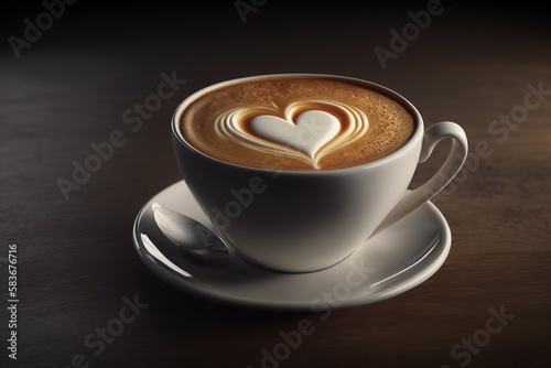 a cup of cappuccino coffee with a drawn heart on the foam. Generative AI.