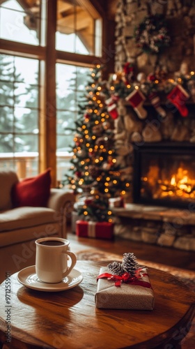 cup, hot drink, table, fireplace, domestic, room, indoor, tree, decoration, home, interior, gift, winter, wood, material, window, living, comfortable, christmas, celebration, season, light, lifestyle, heat, temperature, background, drink, sofa, illuminated, relaxation, fire, natural, phenomena, modern, flooring, decor, closeup, night, dusk, design, culture, present, box, container, food, pillow, december, day