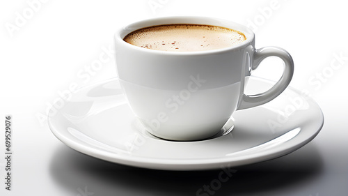 A cup of coffee on a white background. Coffee Mug on a plate.