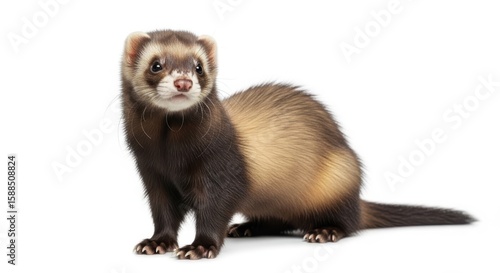 ferret, animal, pet, mammal, domestic, cute, adorable, furry, wildlife, rodent, small, portrait, studio, shot, white, background, isolated, curious, alert, standing, photo, weasel, family, carnivore, playful, energetic, exotic, companion, natural, colours, clean, minimalist, common