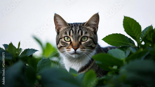 curious, tabby, cat, peeking, lush, green, foliage, nature, felino, hidden, jungle, leaf, whisker, eye, forest, pet, animal, wild, garden, playful, cute, exploring, camouflage, pounce, alert, fur, striped, predator, mysterious, soft, fluffy, furry, inquisitive, sneaky, stealthy, vibrant, small, wild animal, flora, plant, domestic, mischievous, observing, watching