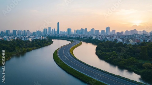 highway, landscape, road, urban, serene, curve, evaporate, tranquil, skyline, surround, greenery, water, body, landscape, culture, balance, travel, design, nature, modern, escape, beauty, peaceful, journey, city, commute, scenic, quiet, vibrant, freshness, streetscape