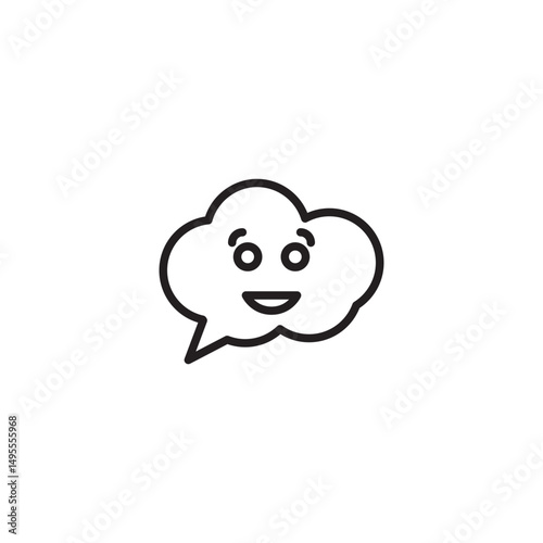A cute, black outline of a thought bubble or cloud with a happy face, featuring wide eyes and a smiling "D" shaped mouth, on a plain white background.