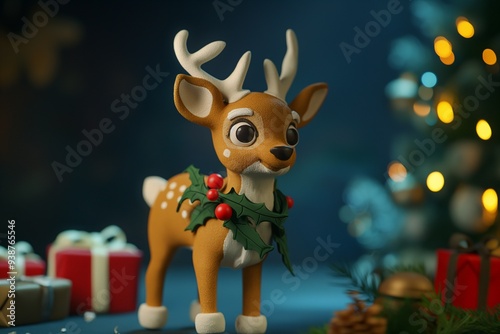 christmas, reindeer, holiday, decoration, festive, gift, present, toy, tree, winter, holly, antler, blue, background, seasonal, ornament, celebration, red, green, december, cheerful, merry, tradition, cute, character, joyful, cosy, wrapped, ribbon, bokeh, christmas tree, cervid, decor, spirit, festive season, ornament, holiday spirit, magical, joy, scene, christmas, design, peaceful, greeting, light, anticipation