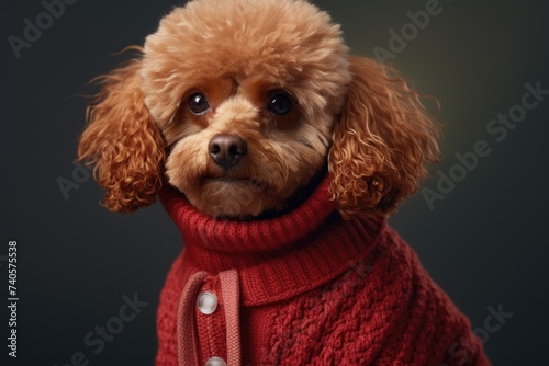 A cute dog wearing a red sweater. Perfect for pet clothing ads