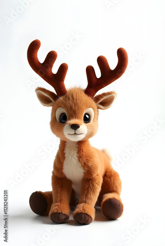 A cute doll reindeer with a red ribbon for Christmas in a fun and festive illustration