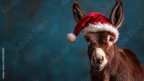 donkey, santa, hat, cute, holiday, portrait, expression, charming, delightful, joyful, festive, character, emotion, cheerful, art, animal, whimsical, playful, festive season, nature, photo, creativity, seasonal, warmth, vibrant, spirit, adorable, fun, representation, children, culture, decoration, winter, happiness, unique, visual, atmosphere, illustration, enchanting, dreamy