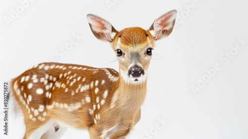 fawn, cervid, wildlife, animal portrait, nature, white background, innocence, delicate, beauty, mammal, closeup, photo, fauna, gentle, tender, sweet, adorable, animal kingdom, natural beauty, spring, forest, timberland, peaceful, serene, calm, baby animal
