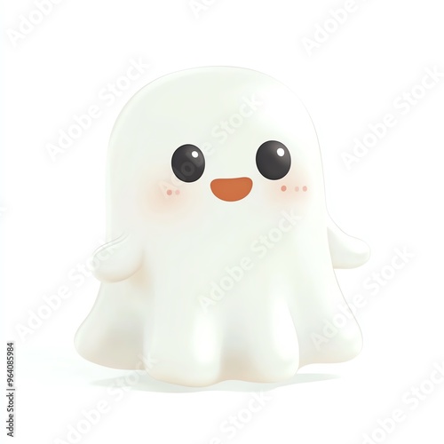 A cute Halloween ghost, Japanese kawaii style, blush cheeks, soft pastel tones, isolated on white background