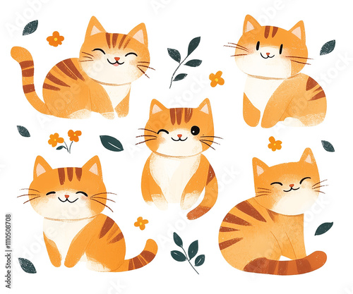 A cute orange cat stickers, simple and minimalist design with Japanese style